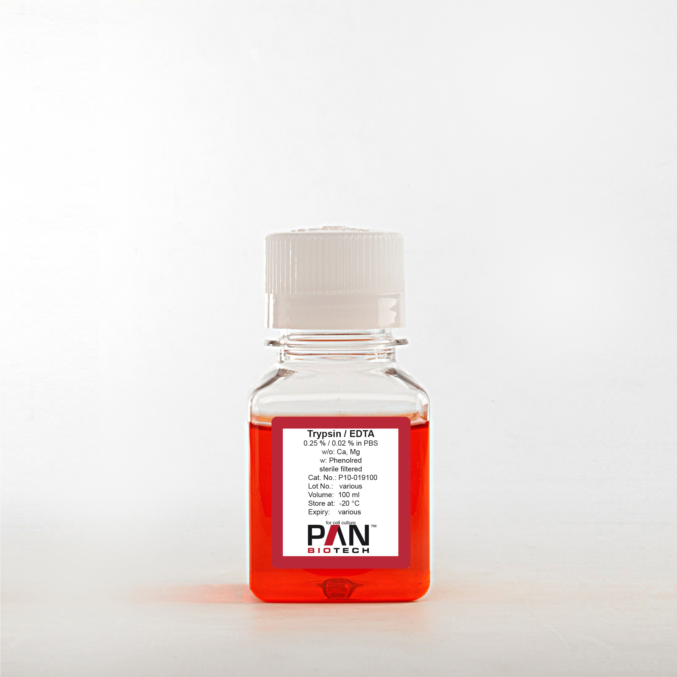 Elevate your cell dissociation and detachment procedures with our Trypsin 0.25% / EDTA 0.02% solution, conveniently formulated in PBS without Ca and Mg but enriched with Phenol Red. This specialized solution is ideal for gentle and efficient cell detachment and passaging. Trust in the precision and quality of our Trypsin/EDTA solution to support the success of your cell culture experiments.